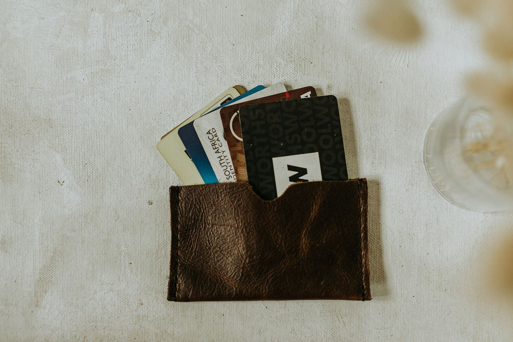 Introducing our sleek Leather Card Pouch—a stylish solution for keeping your cards organized and easily accessible!