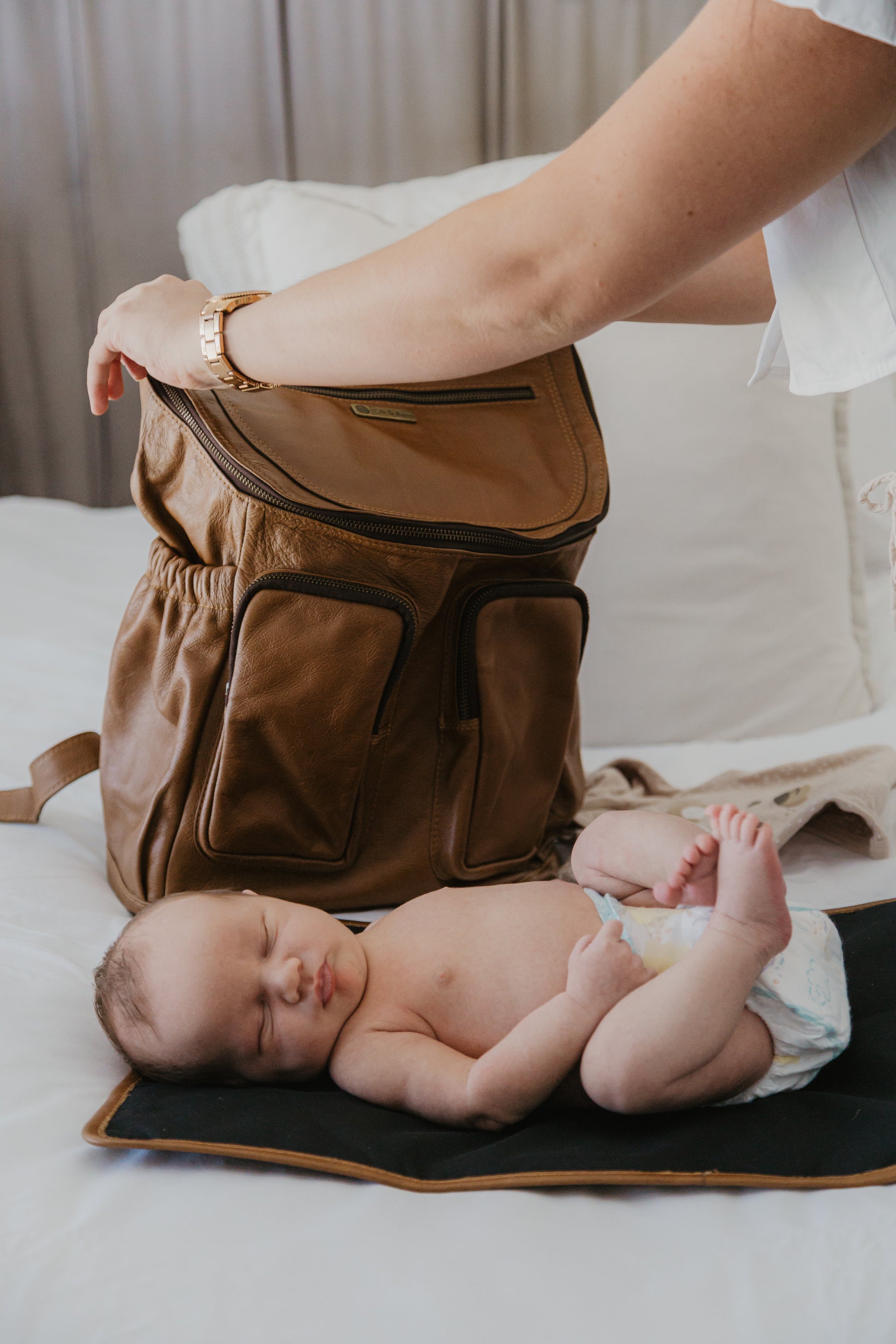Crafted from 100% leather, this stylish changing mat features a waterproof lining to keep things clean and convenient. The handy clip keeps the mat securely folded up, ensuring easy transport. Plus, it doubles as a mini playmat, providing a comfy spot for your little one when they can’t sit on the floor.