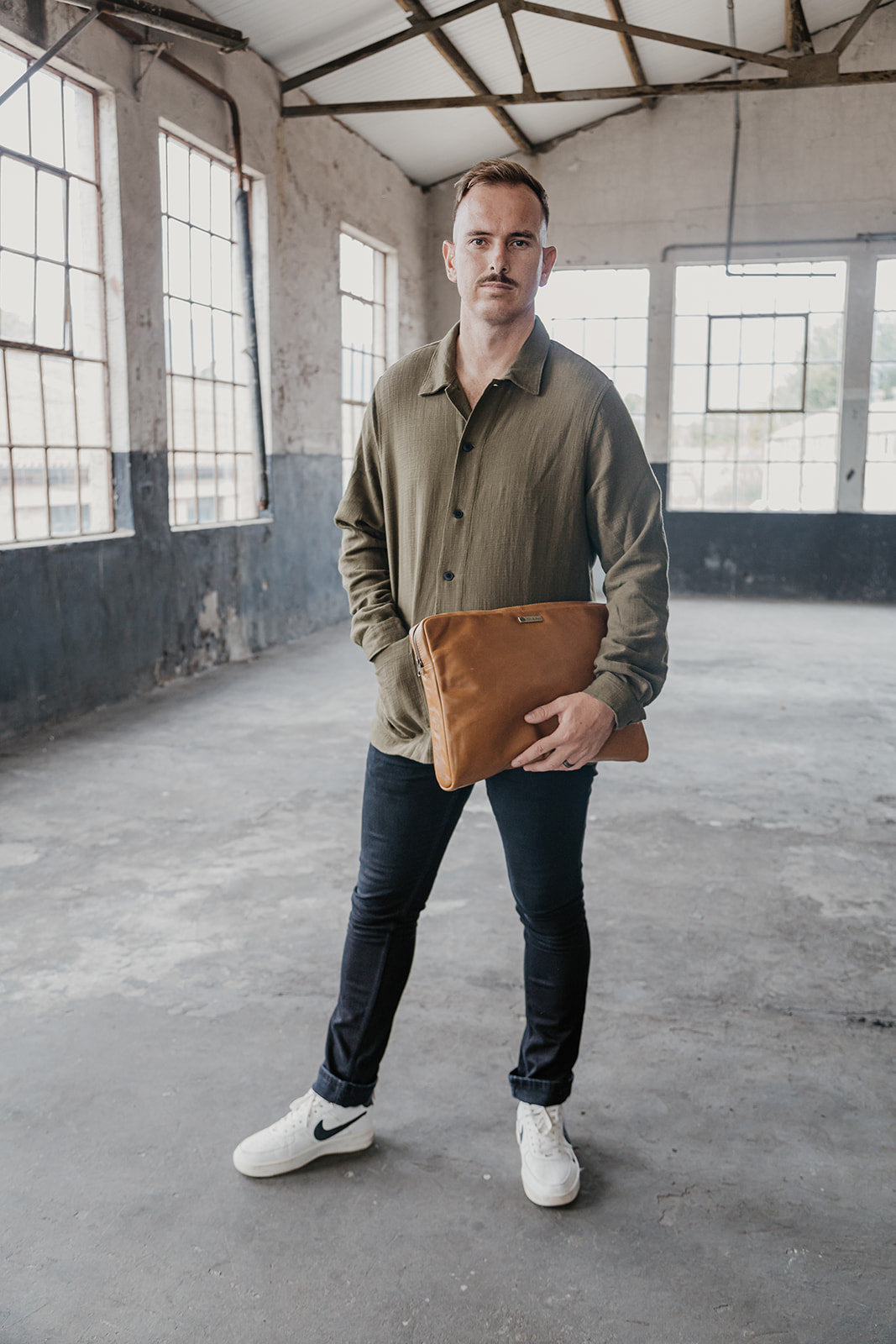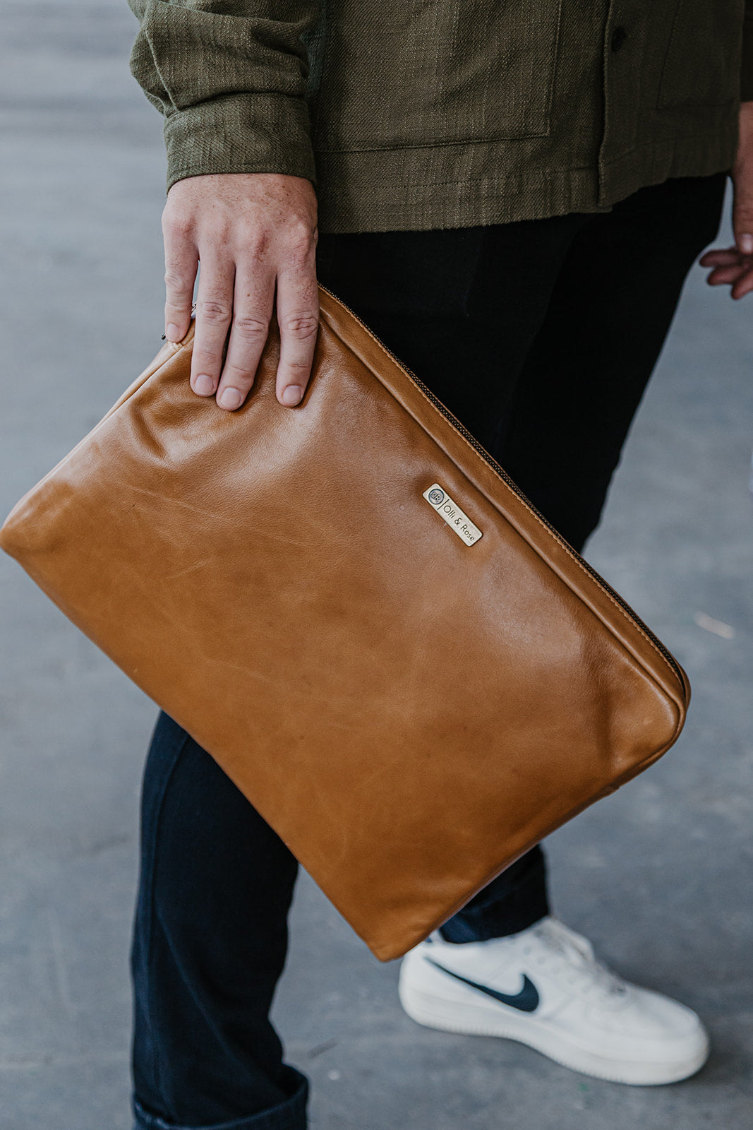 Introducing the Padded Laptop Sleeve—a compact and practical solution for your daily run-around! This leather laptop sleeve is designed to keep your device safe while maintaining a sleek profile.