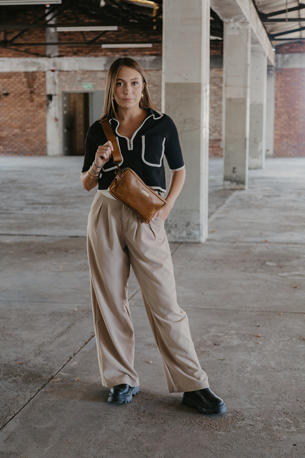 Key features include a top YKK metal zip for secure closure, a luxurious leather lining, and antique brass fittings that enhance its durability and elegance. Upgrade your accessory game with this chic and versatile crossbody bag!