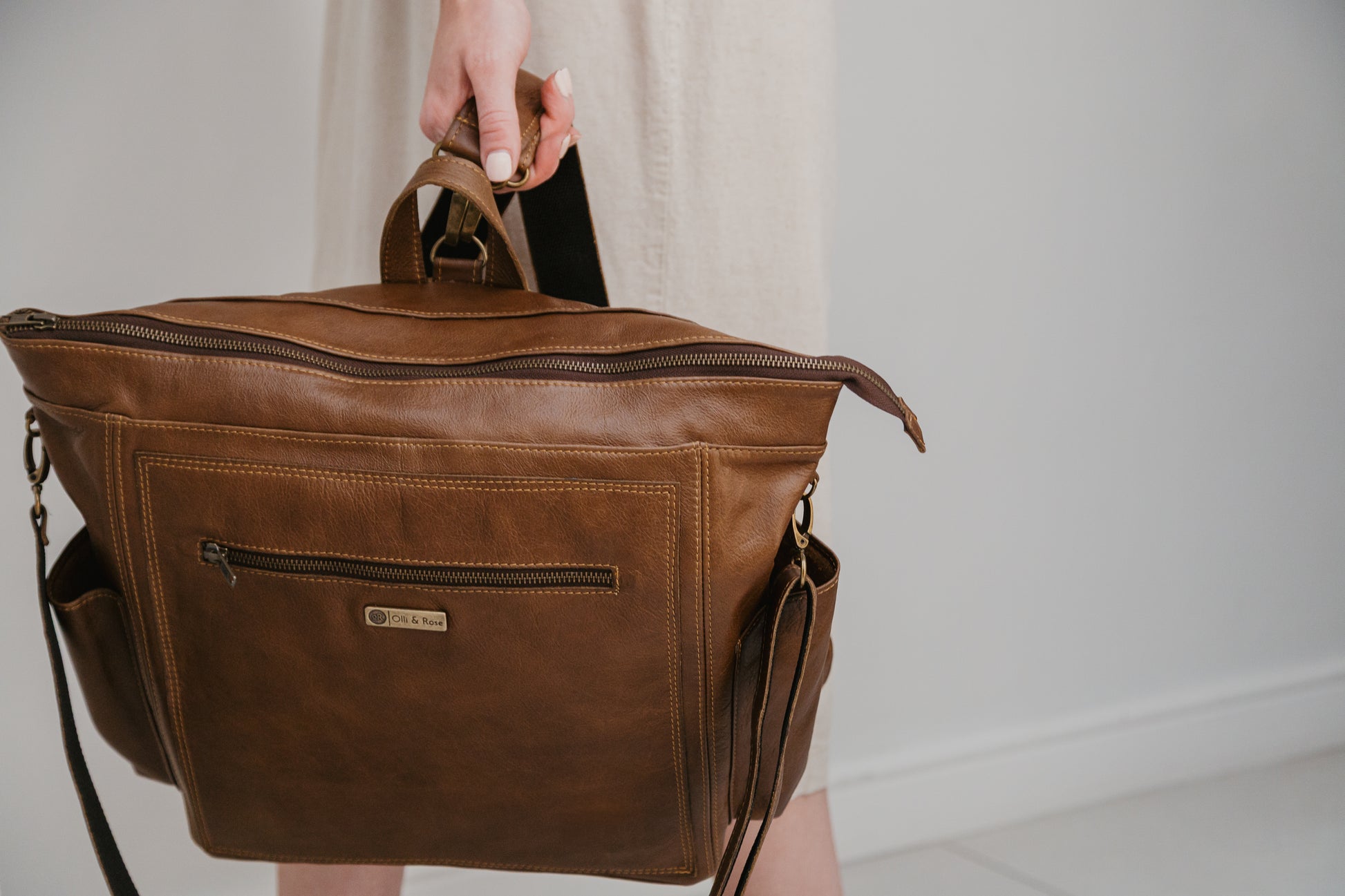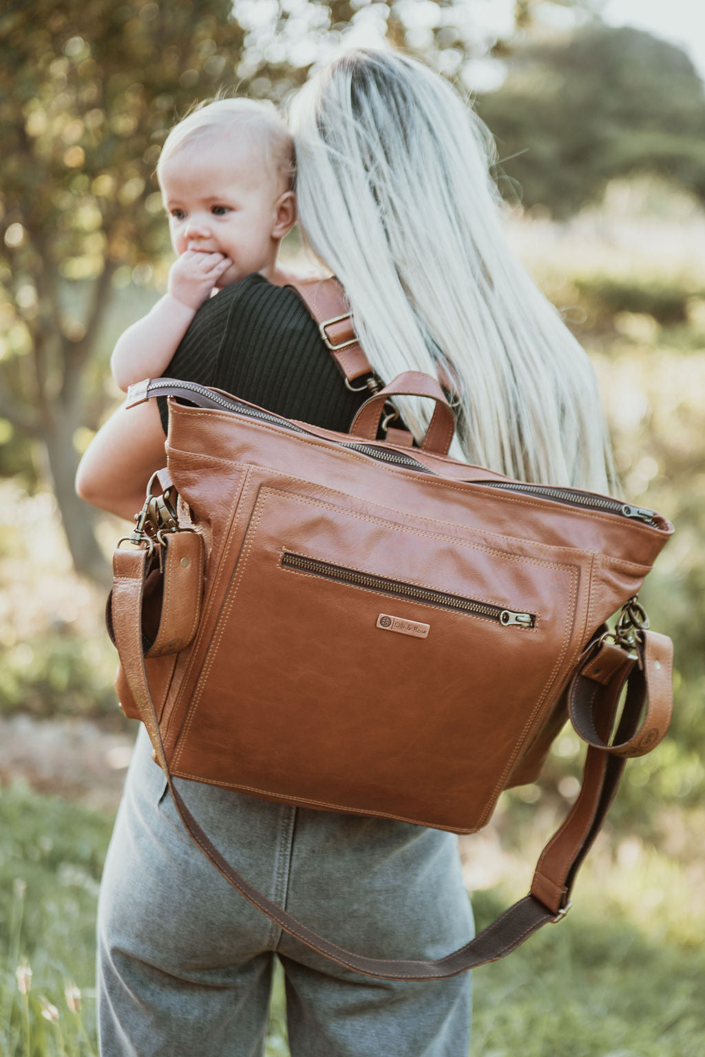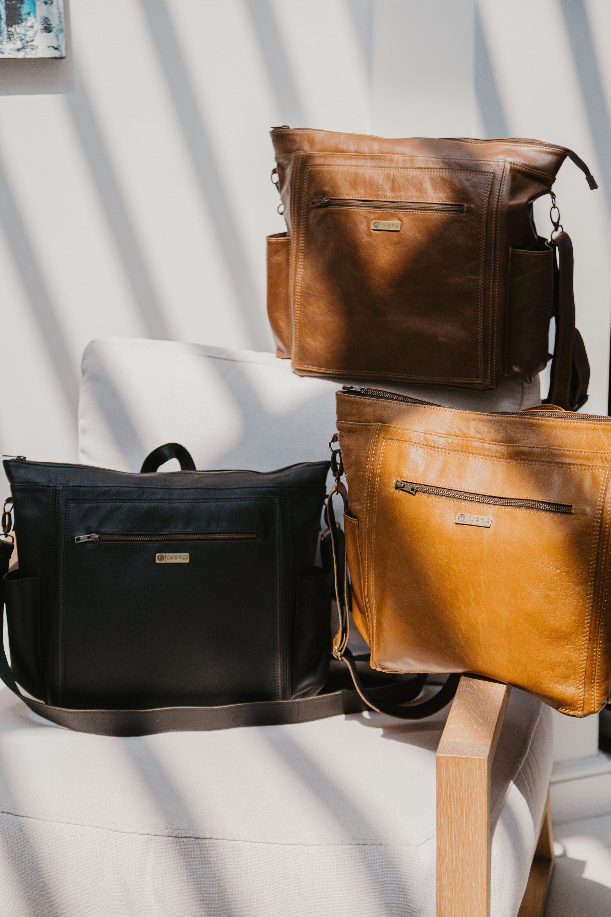 The FunkyMama is the perfect multi-functional leather baby bag that every mom needs. Lightweight and easy to carry, this grab-and-go bag is designed to keep up with your busy lifestyle while providing ample space for all your baby essentials.